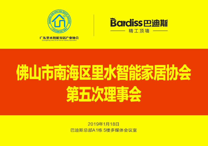 [詳細閱讀]佛山市南海區(qū)里水智能家居協(xié)會第五次理事會議于2019年1月18日在佛山巴迪斯新型建材有限公司5樓多媒體會議室召開,會長陳鴻填先生,秘書長劉偉哲及鎮(zhèn)內(nèi)知名智能家居企業(yè)代表均應(yīng)邀到場,齊齊探討中小企業(yè)家居創(chuàng)新的發(fā)展方向。
