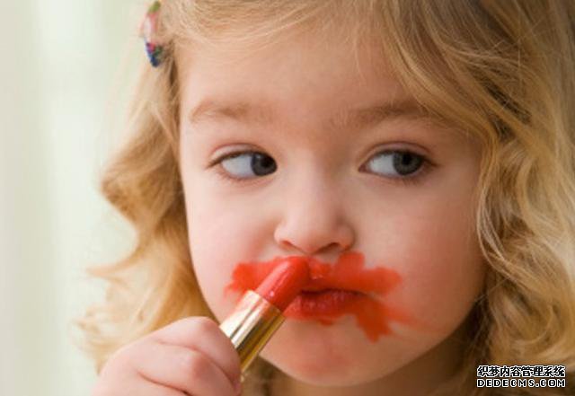 小時候愛玩愛跟風,同伴愛美,拿畫畫的顏料筆當口紅涂,猩紅猩紅的像鬼。