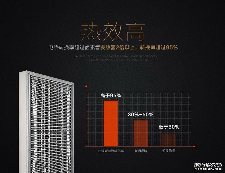 相對于傳統采暖方式,碳纖維電采暖系統的熱轉換率高,可以大大減少轉換及傳遞過程中的能量損失。通過調查,電熱轉換率超過鹵素管發熱器2倍以上,而巴迪斯電熱轉化率高于95%,超過許多同行的品牌。